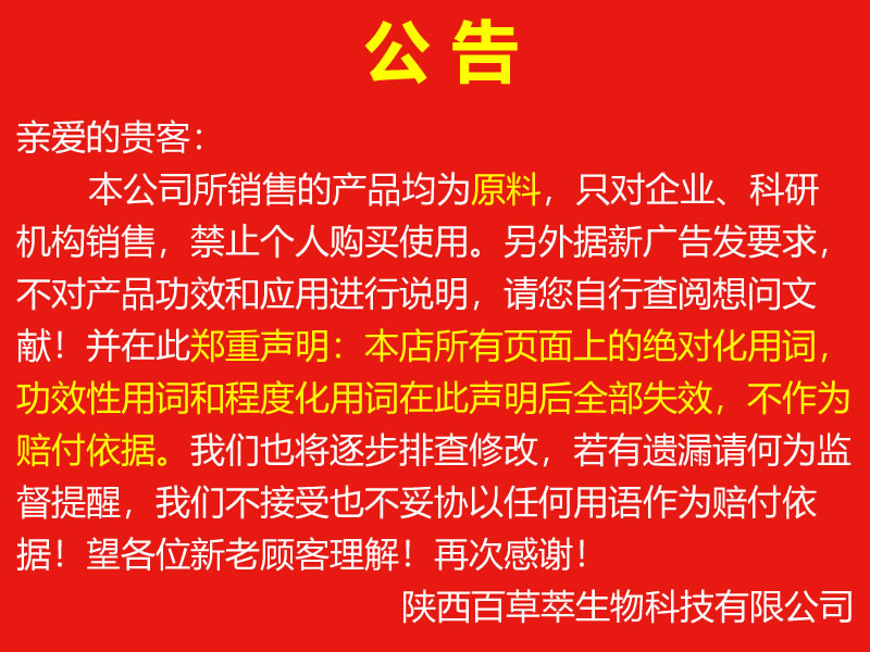 本公司現(xiàn)已與多所科研院緊密合作,公司擁有配套完整的提取、分離、萃取、柱層析、濃縮干燥等設(shè)備和技術(shù),具有豐富的生產(chǎn)天然植物提取物的經(jīng)驗(yàn)和嚴(yán)格的質(zhì)量控制體系。陜西百草萃生物科技有限公司為廣大消費(fèi)著和客戶提供安全、健康、品質(zhì)高、能效強(qiáng)的營(yíng)養(yǎng)健康品,主營(yíng)產(chǎn)品包括:國(guó)食健字鋅硒寶、鋅硒寶、欣寶兒童鋅硒寶、復(fù)合鋅硒片、復(fù)合蛋白鋅、千凈顆粒、蛋白乳鐵片、瑪咖復(fù)合片等、廠家占地五十余畝,廠家建筑面積4000余m2,內(nèi)設(shè)生產(chǎn)車(chē)間、質(zhì)量控制室、產(chǎn)品檢測(cè)中心、陰涼倉(cāng)庫(kù)、..